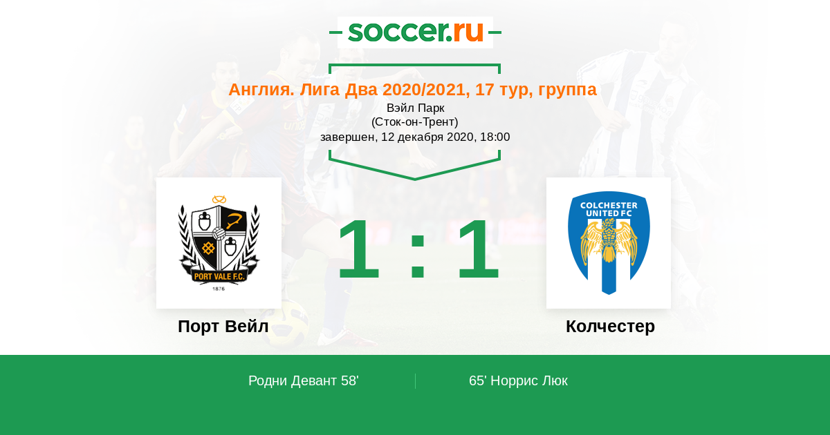 Протокол матча Порт Вейл против Колчестер