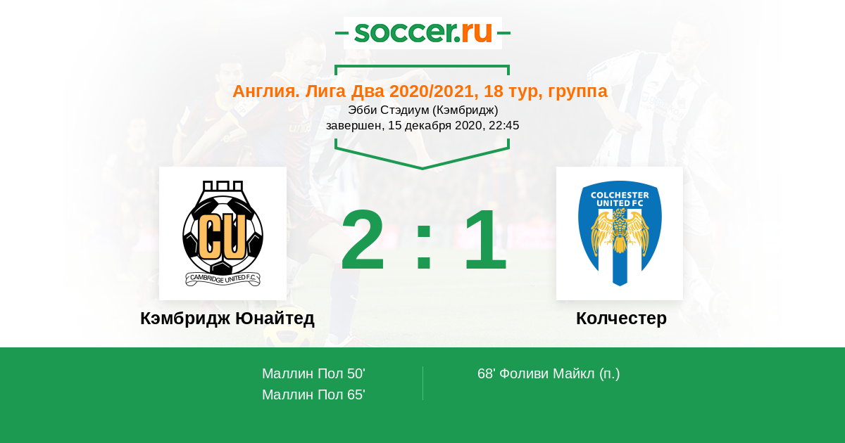 Протокол матча Кэмбридж Юнайтед против Колчестер