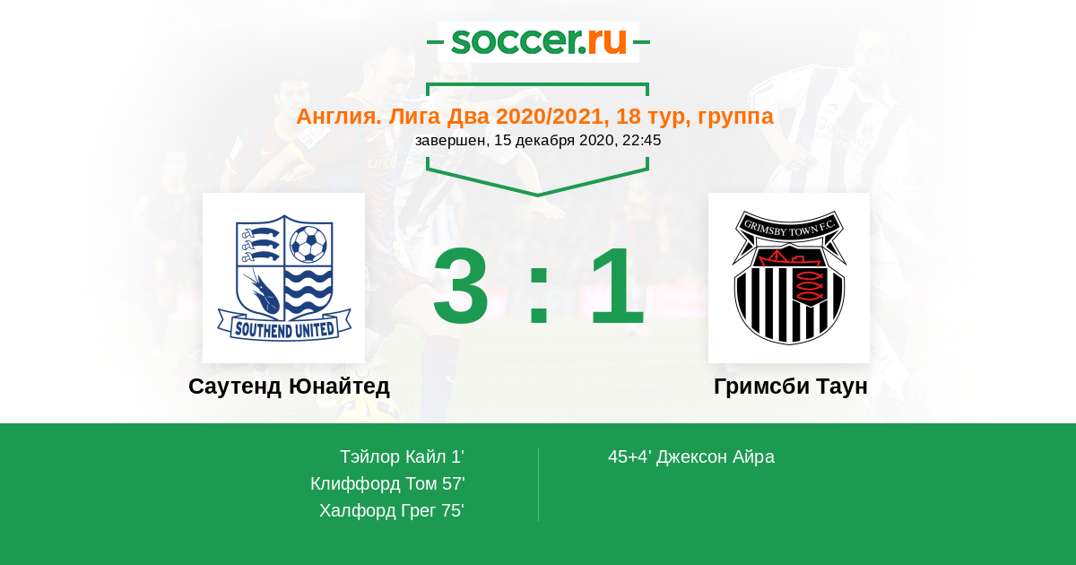 Протокол матча Саутенд Юнайтед против Гримсби Таун
