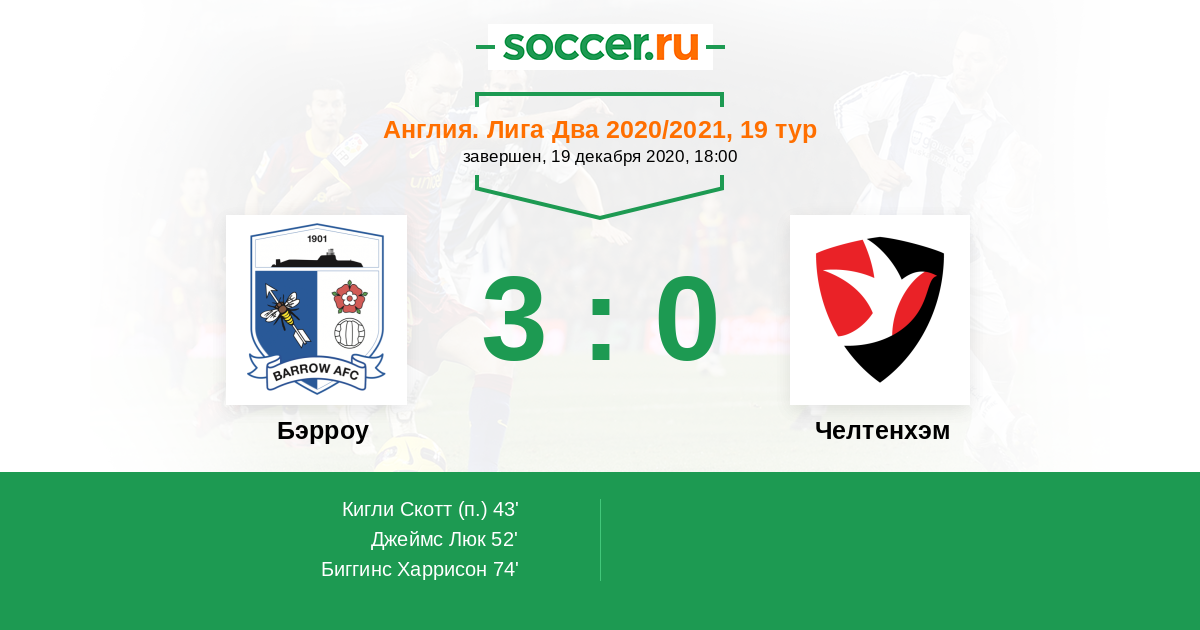 Протокол матча Бэрроу против Челтенхэм