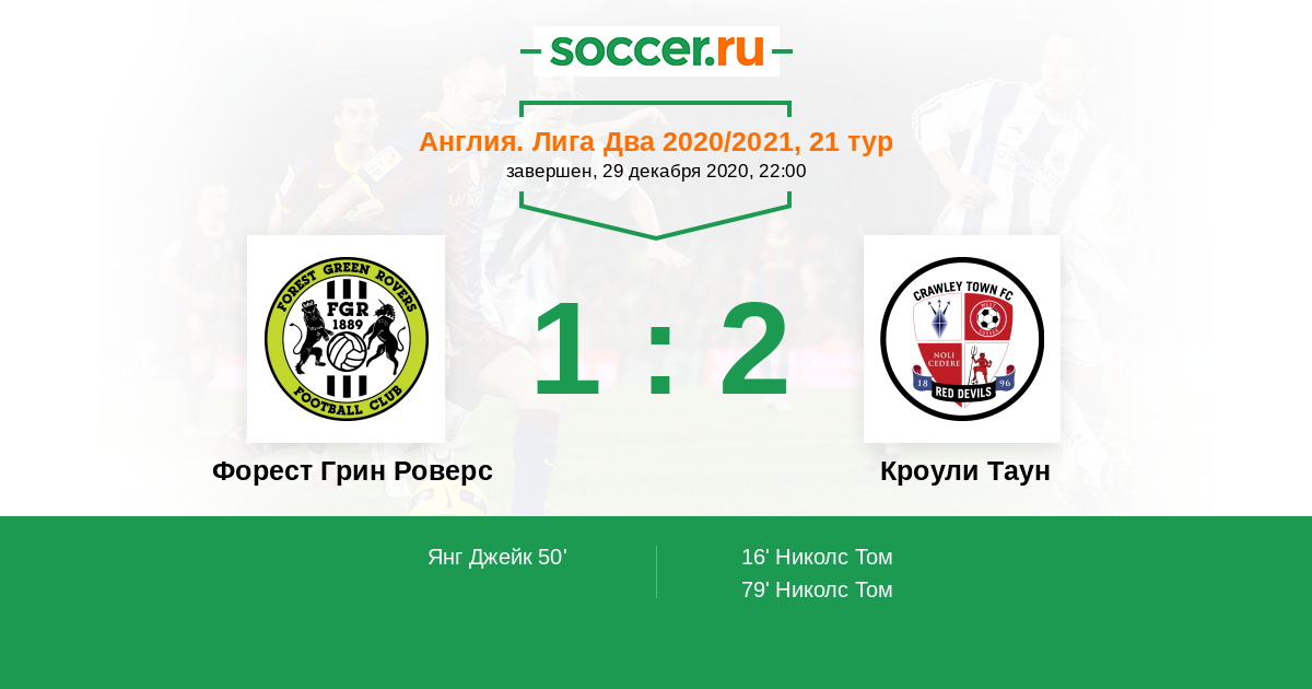 Протокол матча Форест Грин Роверс против Кроули Таун