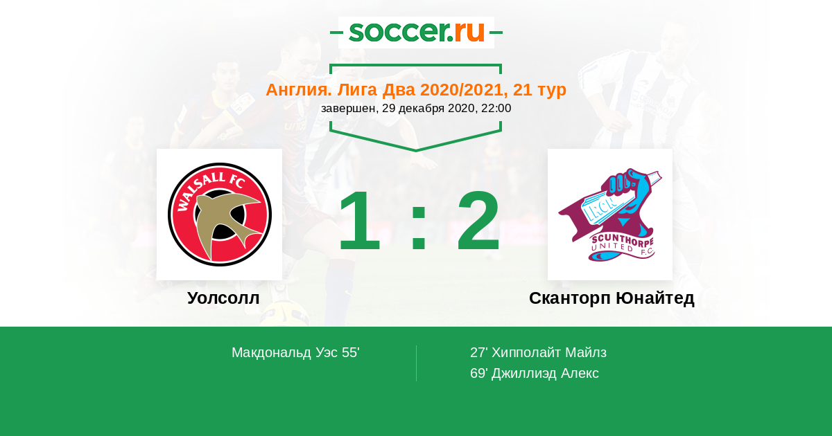 Протокол матча Уолсолл против Сканторп Юнайтед