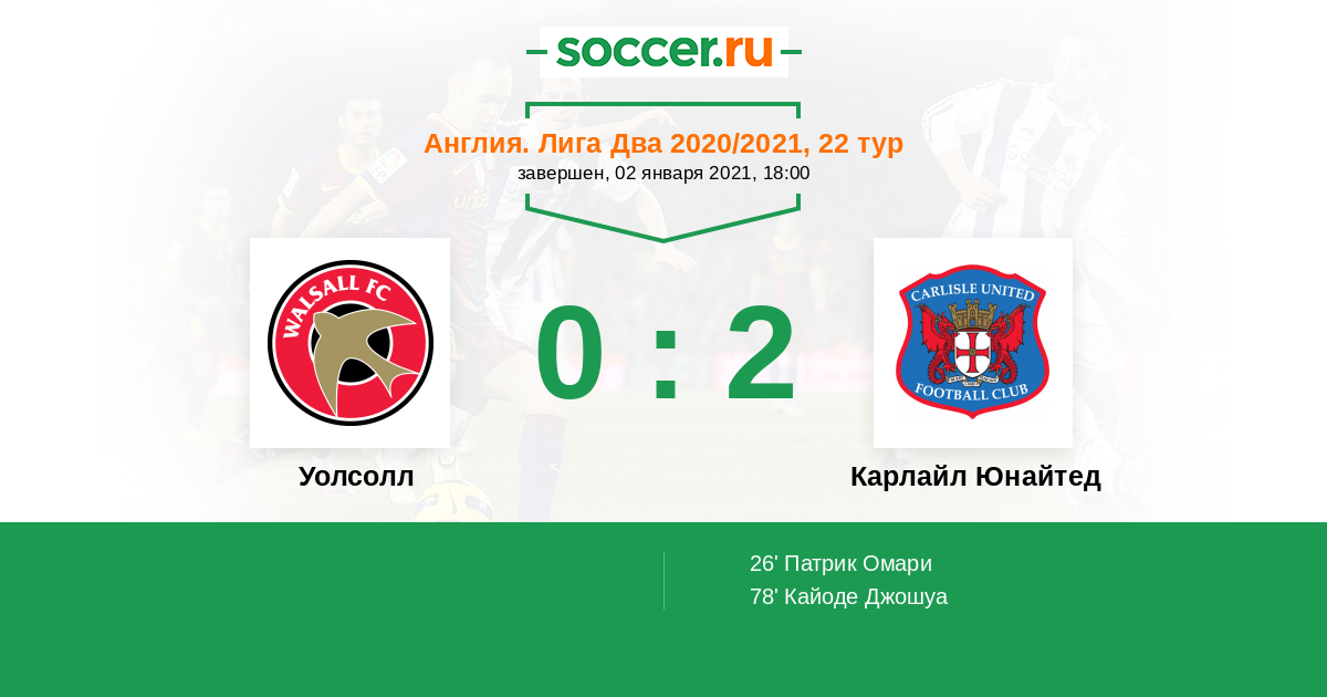 Протокол матча Уолсолл против Карлайл Юнайтед