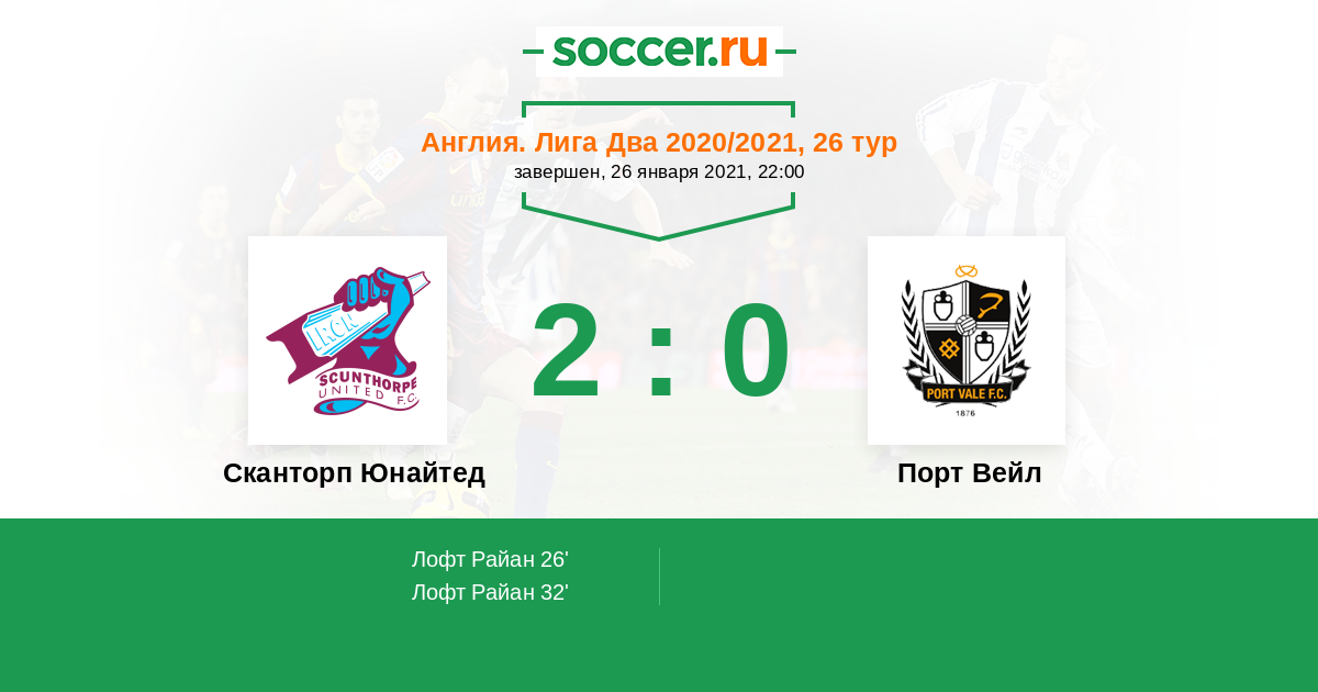 Протокол матча Сканторп Юнайтед против Порт Вейл