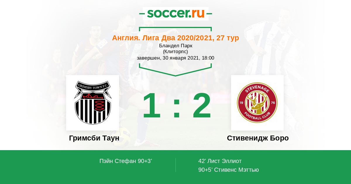 Протокол матча Гримсби Таун против Стивенидж Боро