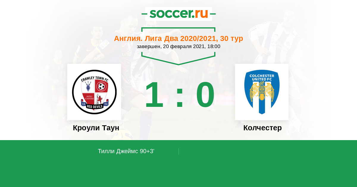 Протокол матча Кроули Таун против Колчестер