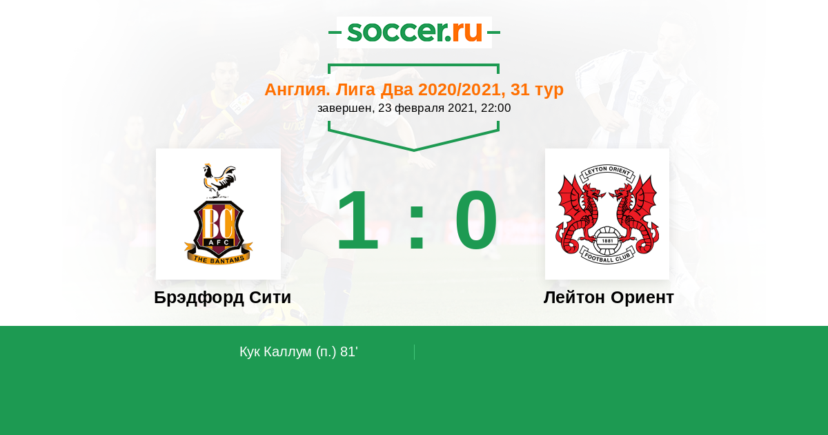 Протокол матча Брэдфорд Сити против Лейтон Ориент