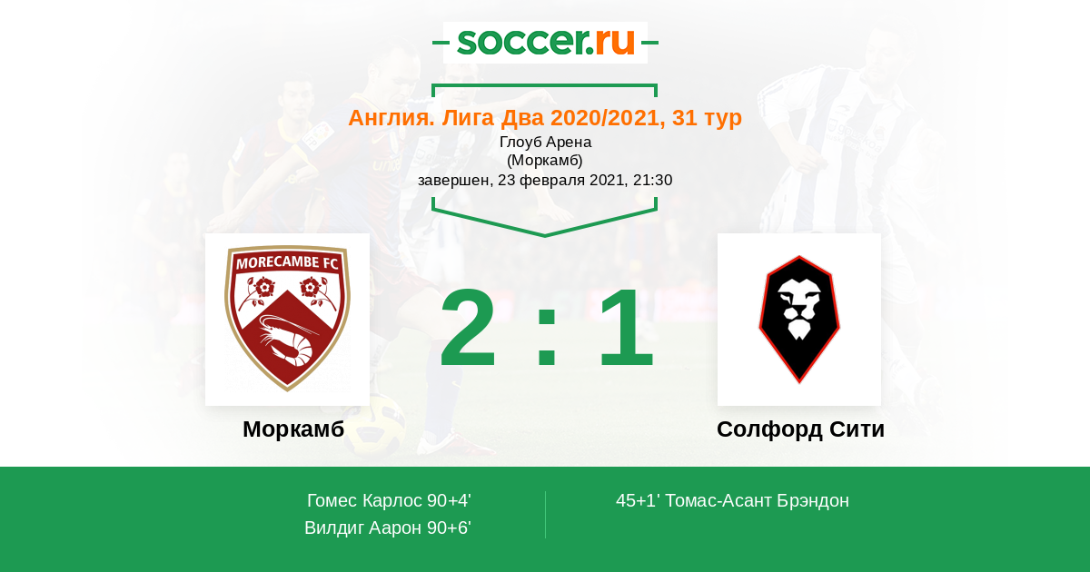 Протокол матча Моркамб против Солфорд Сити