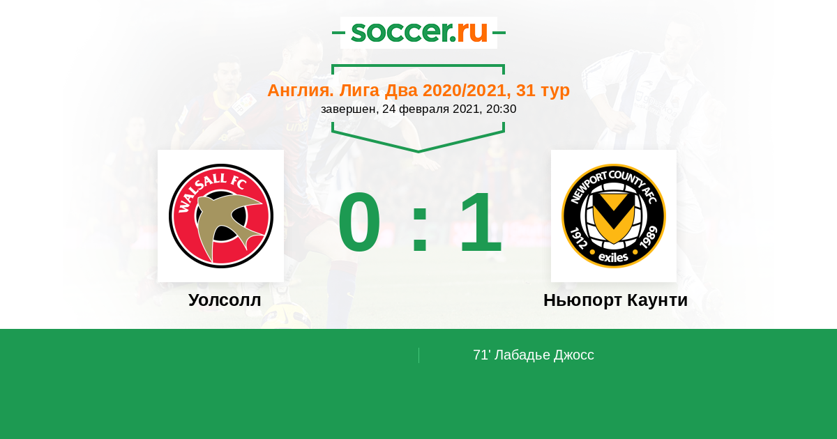 Протокол матча Уолсолл против Ньюпорт Каунти