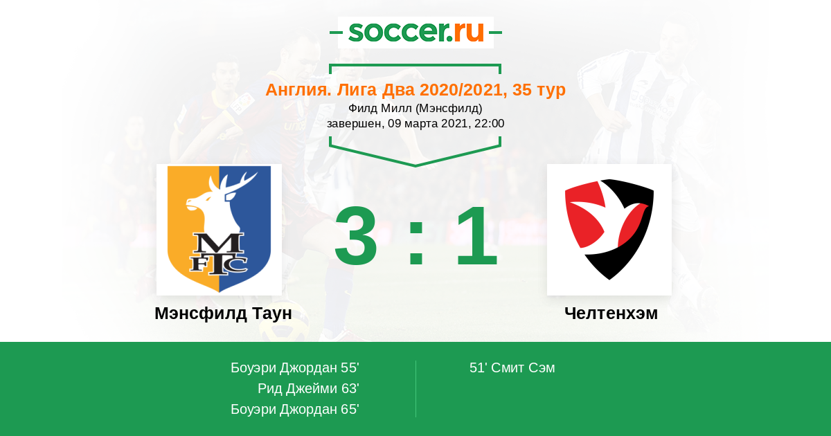Протокол матча Мэнсфилд Таун против Челтенхэм