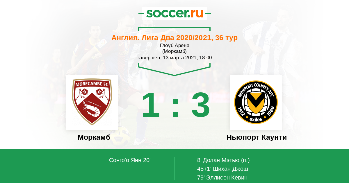 Протокол матча Моркамб против Ньюпорт Каунти