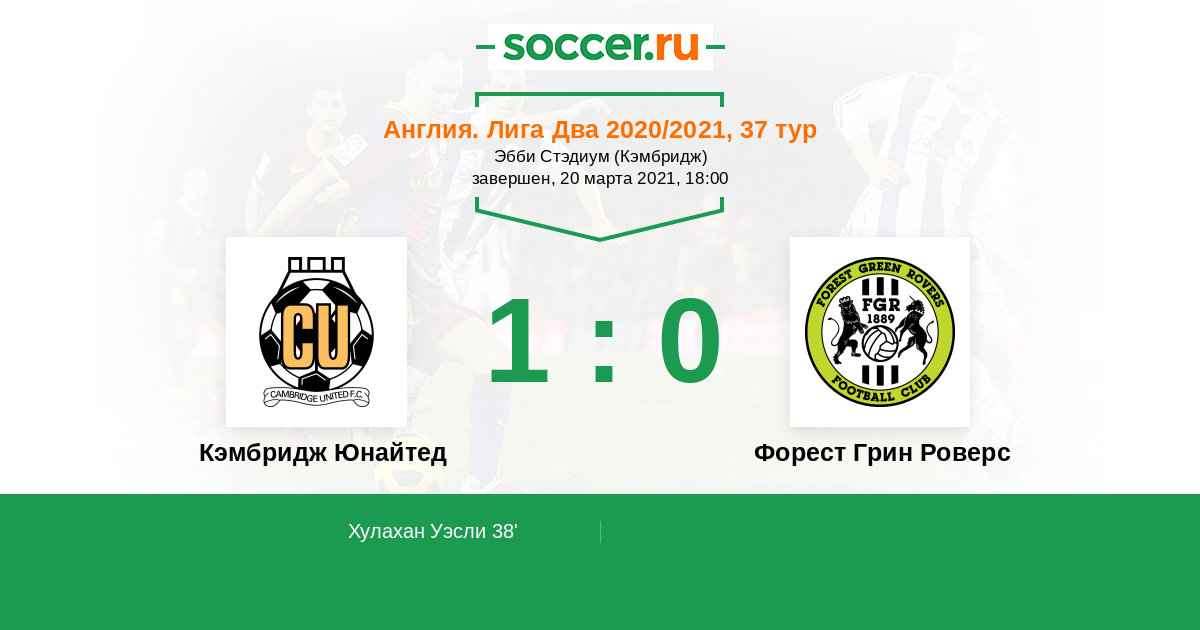 Протокол матча Кэмбридж Юнайтед против Форест Грин Роверс