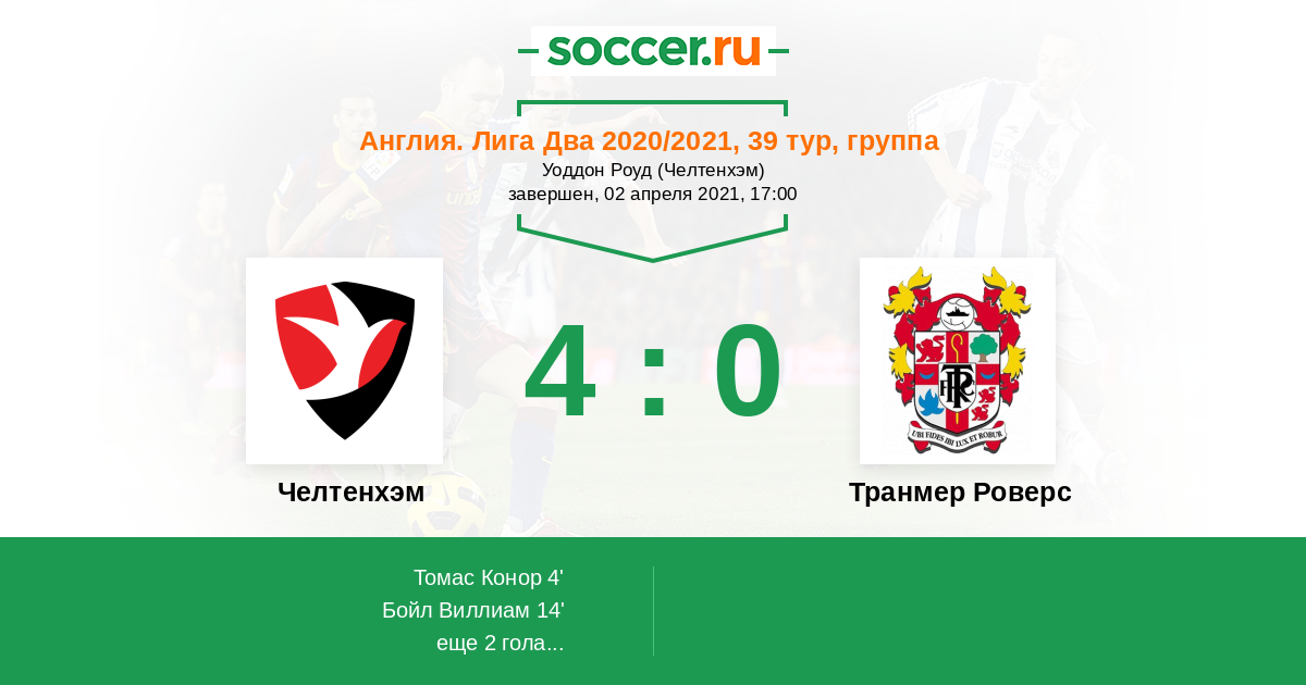 Протокол матча Челтенхэм против Транмер Роверс
