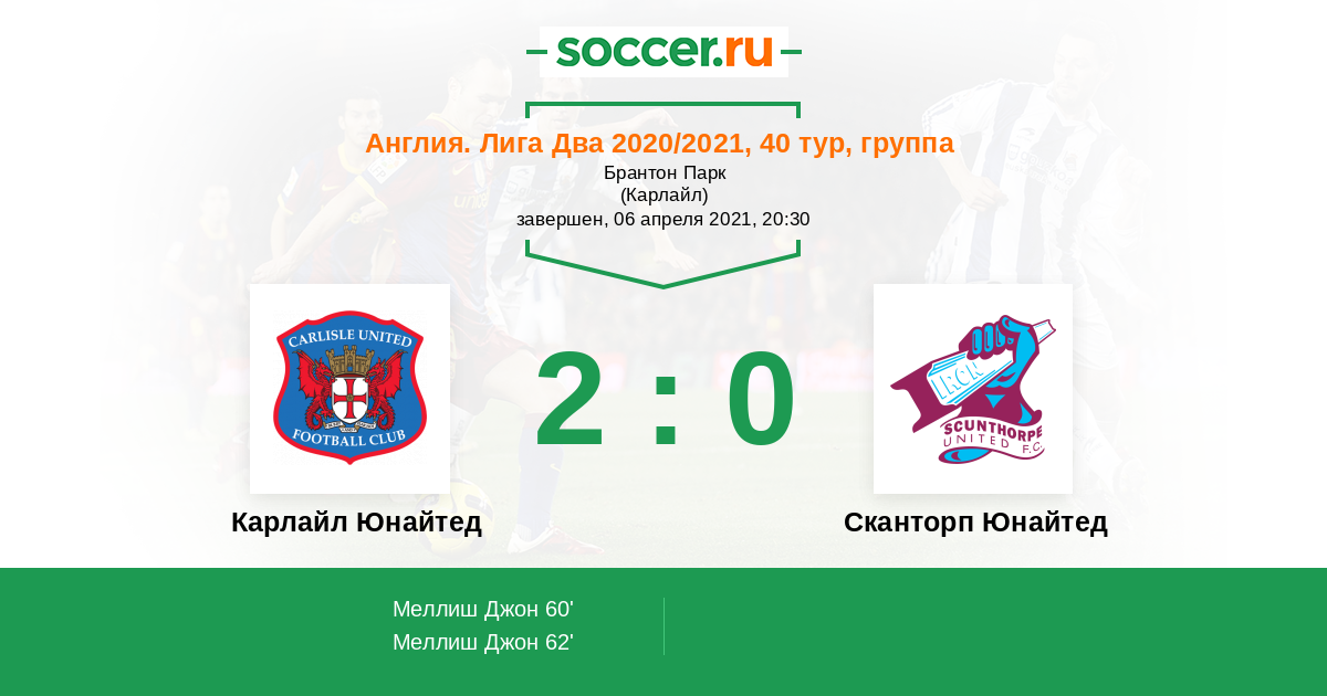 Протокол матча Карлайл Юнайтед против Сканторп Юнайтед