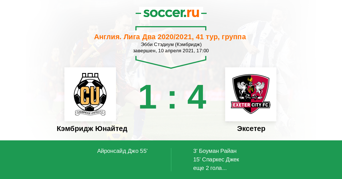 Протокол матча Кэмбридж Юнайтед против Эксетер