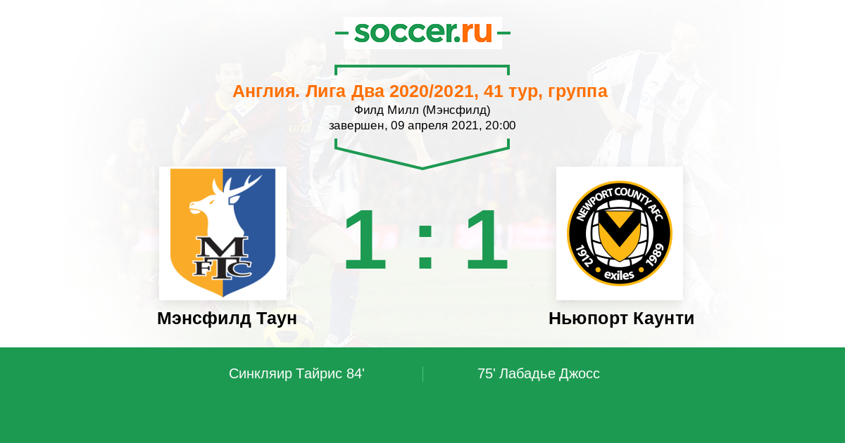 Протокол матча Мэнсфилд Таун против Ньюпорт Каунти