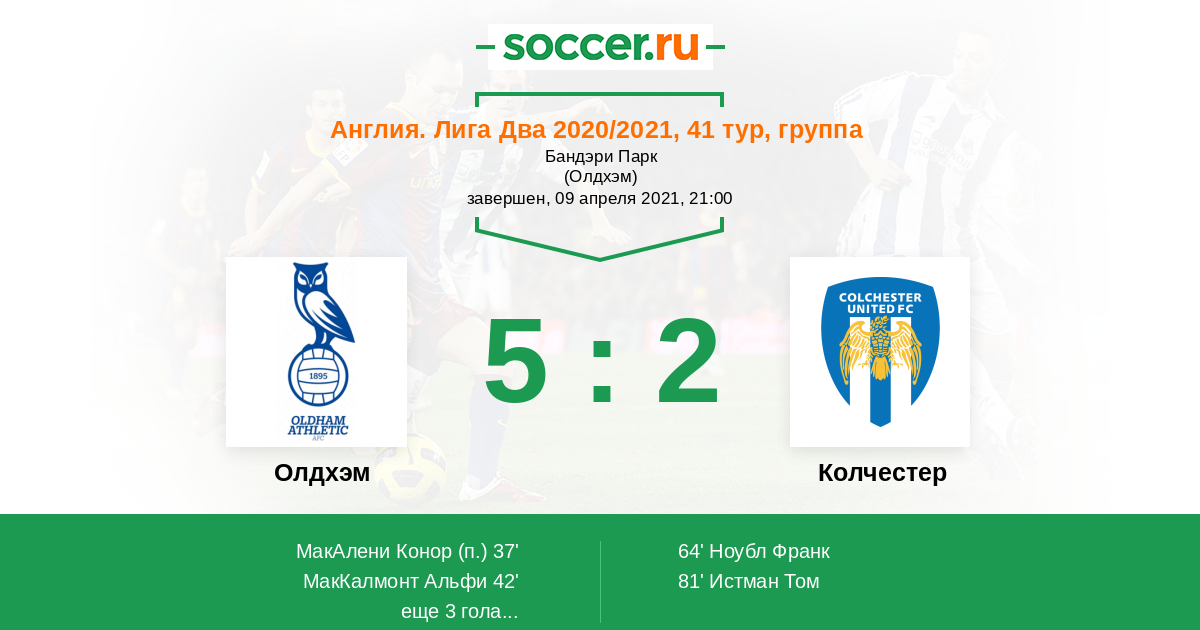 Протокол матча Олдхэм против Колчестер