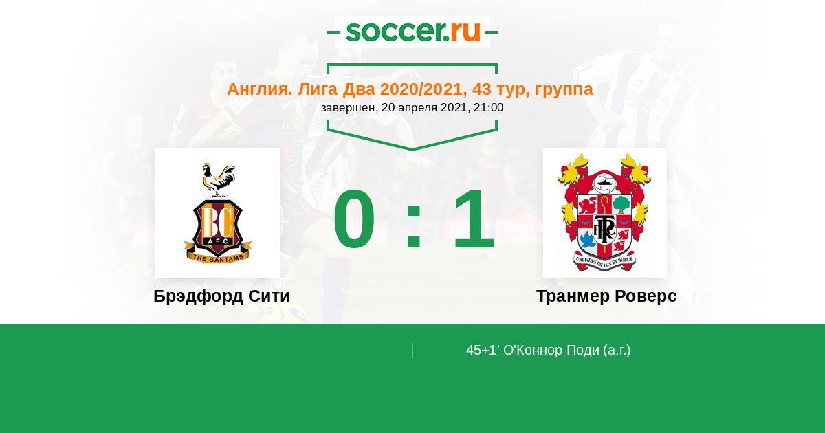 Протокол матча Брэдфорд Сити против Транмер Роверс