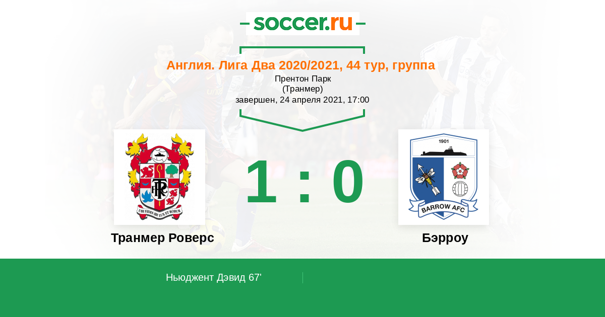 Протокол матча Транмер Роверс против Бэрроу