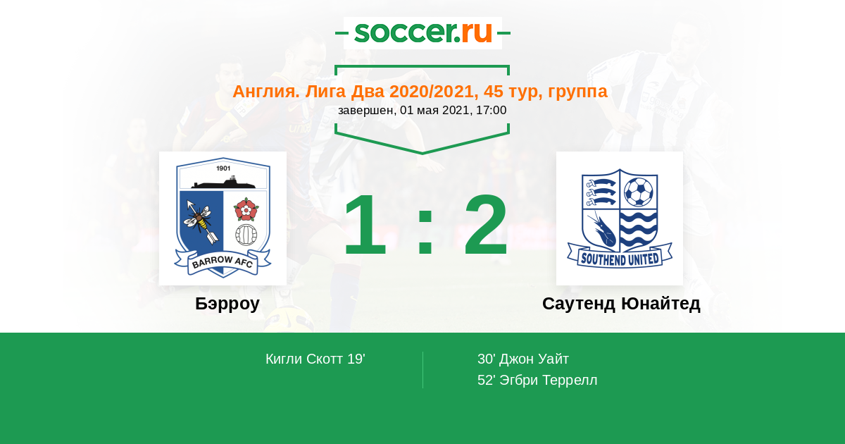 Протокол матча Бэрроу против Саутенд Юнайтед