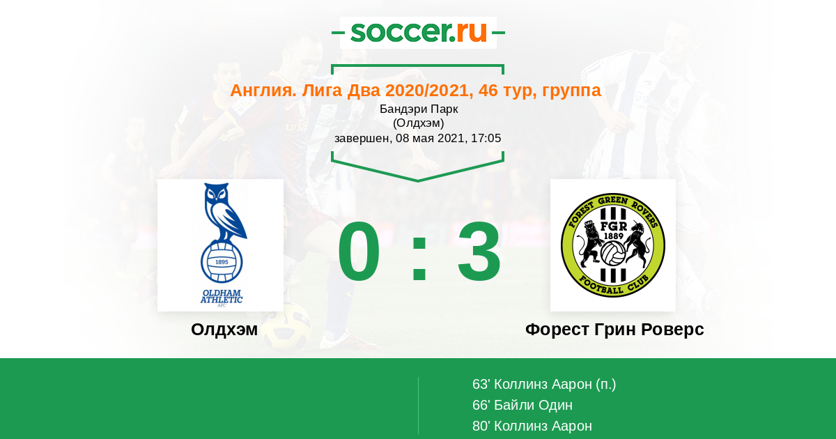 Протокол матча Олдхэм против Форест Грин Роверс