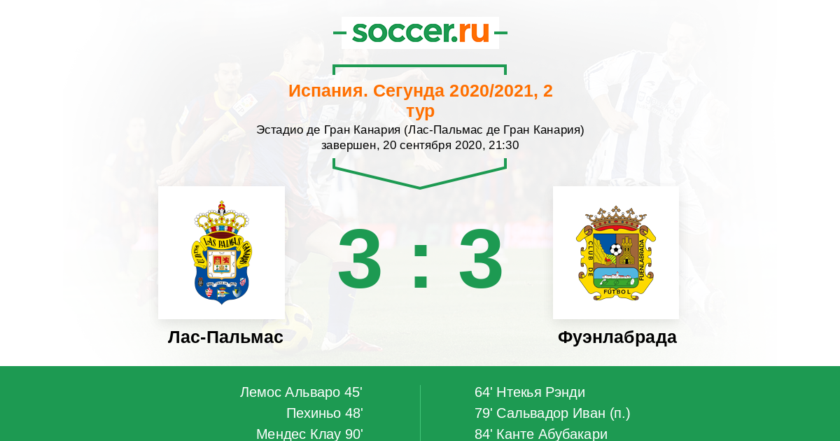 Протокол матча Лас-Пальмас против Фуэнлабрада