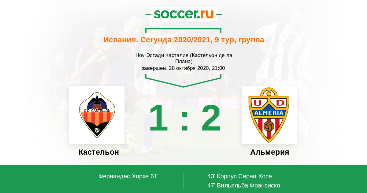 Протокол матча Кастельон против Альмерия