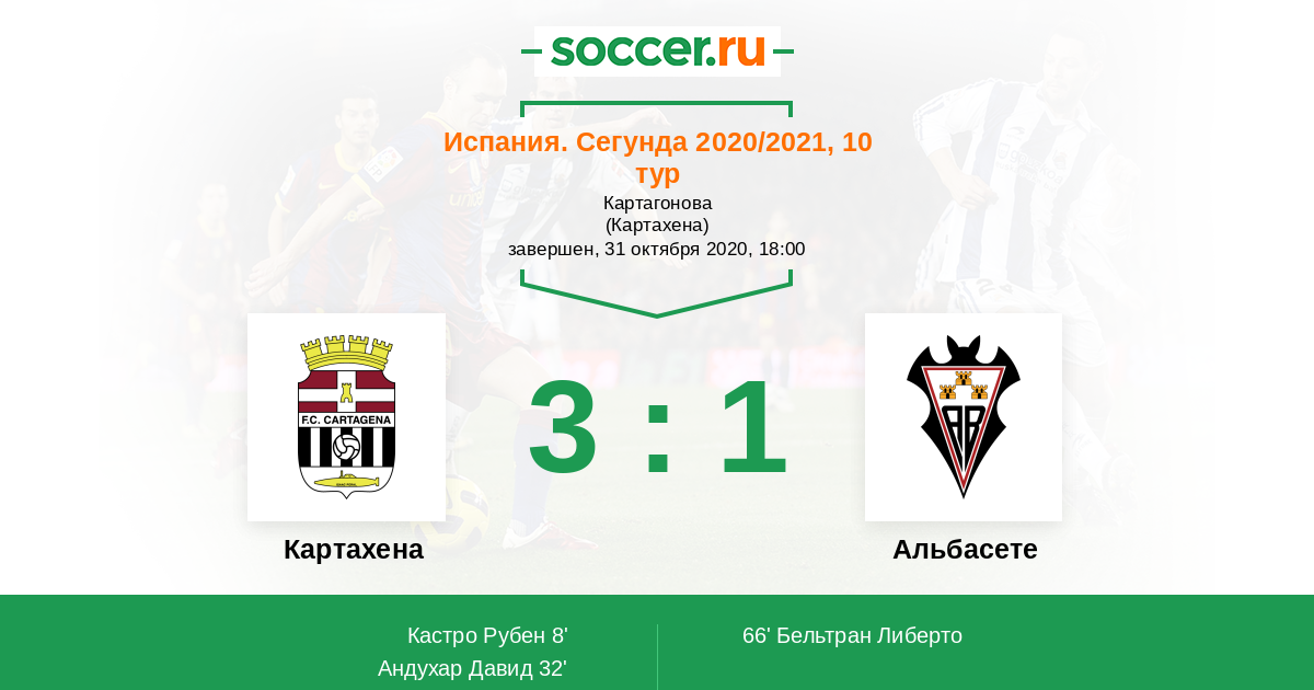 Протокол матча Картахена против Альбасете