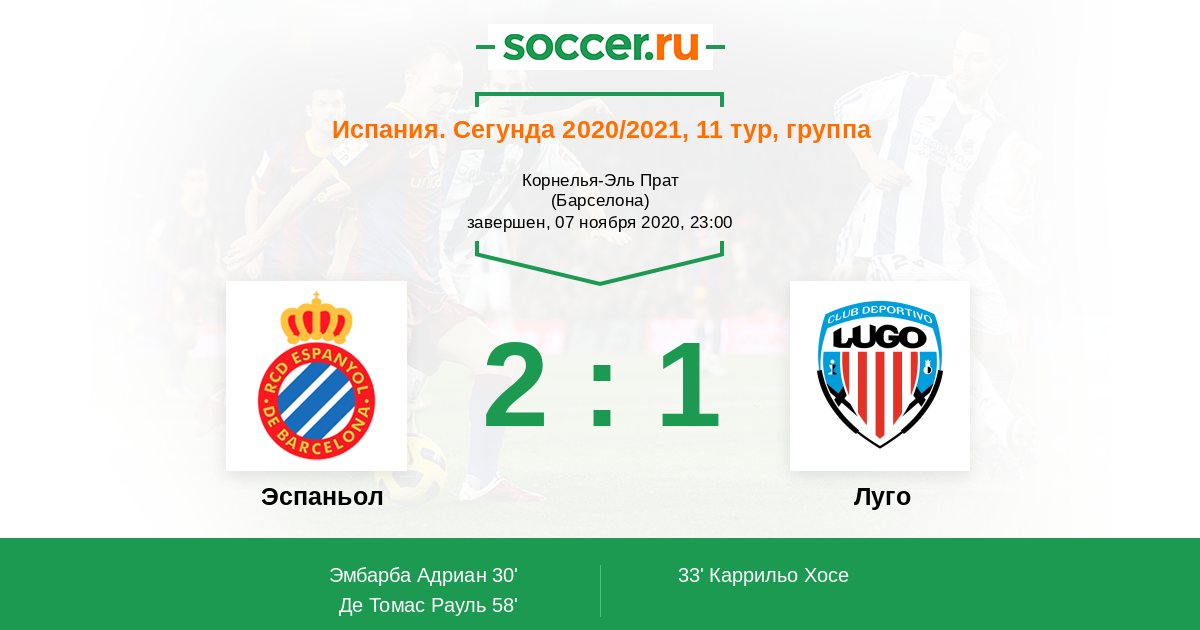 58' (2:1) Де Томас Рауль (11) (Эмбарба Адриан (23))