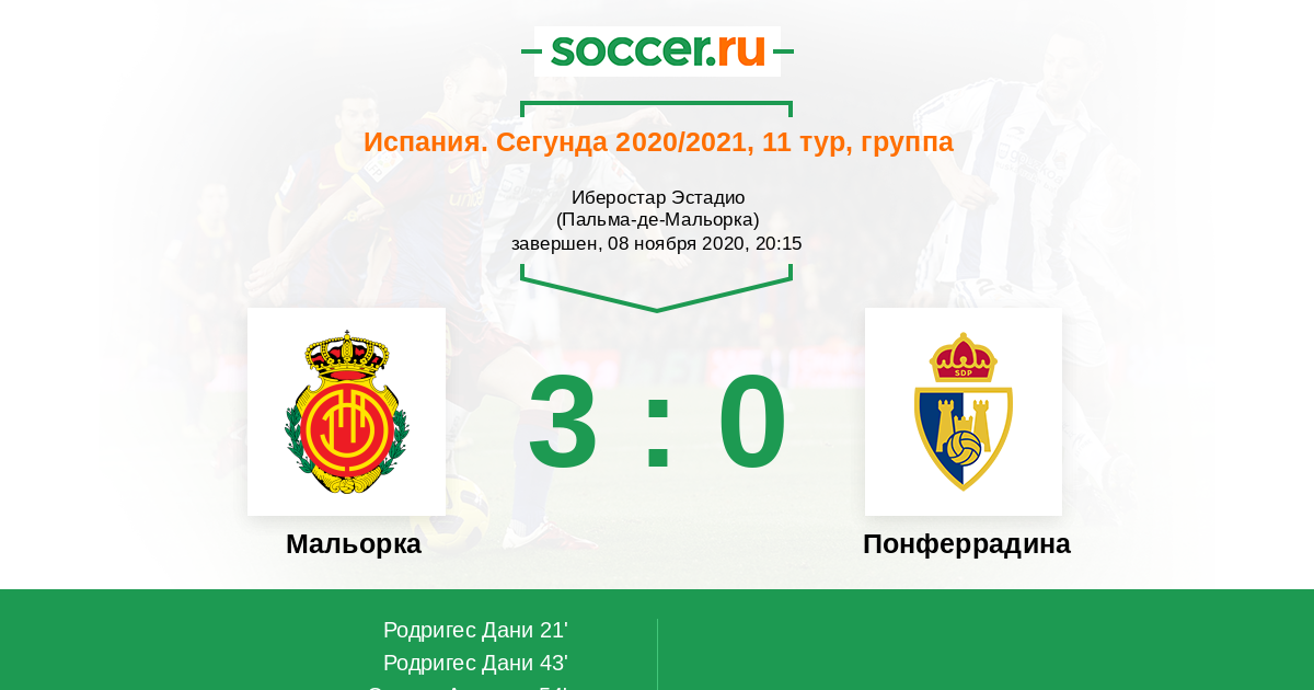 Протокол матча Мальорка против Понферрадина