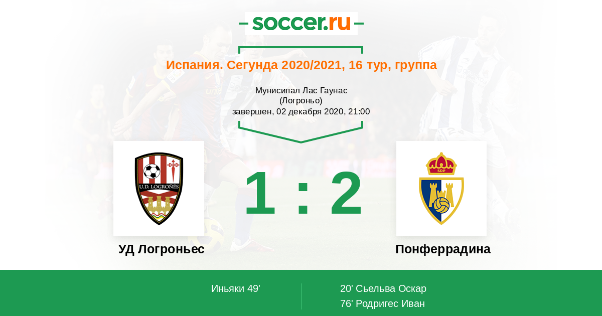 Протокол матча УД Логроньес против Понферрадина