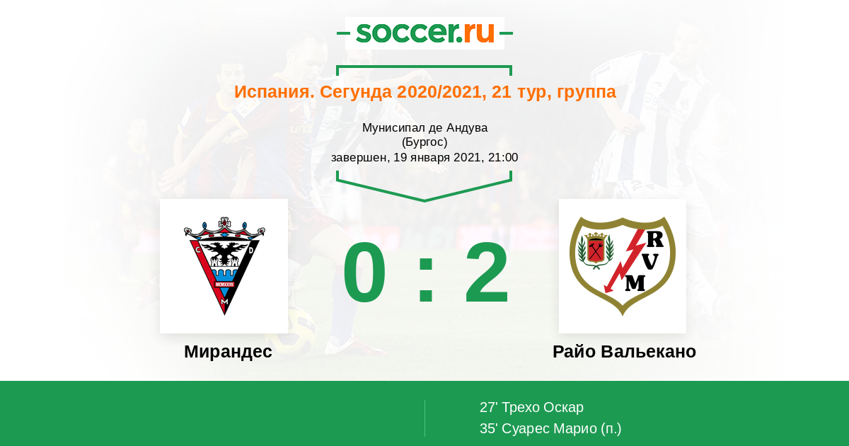 Протокол матча Мирандес против Райо Вальекано