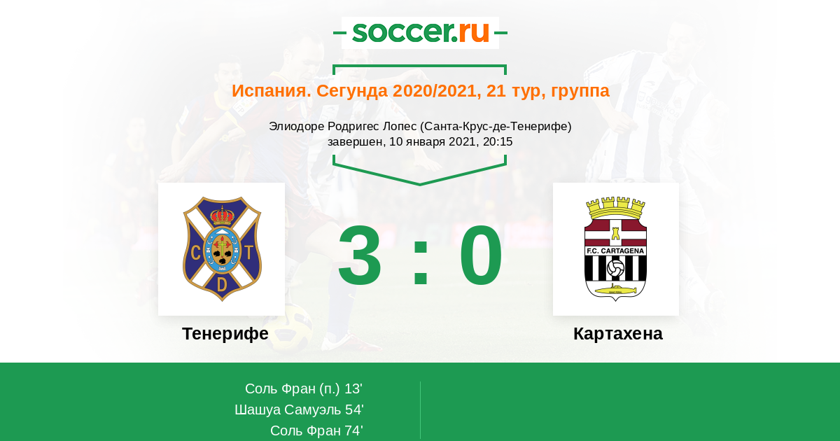 Протокол матча Тенерифе против Картахена