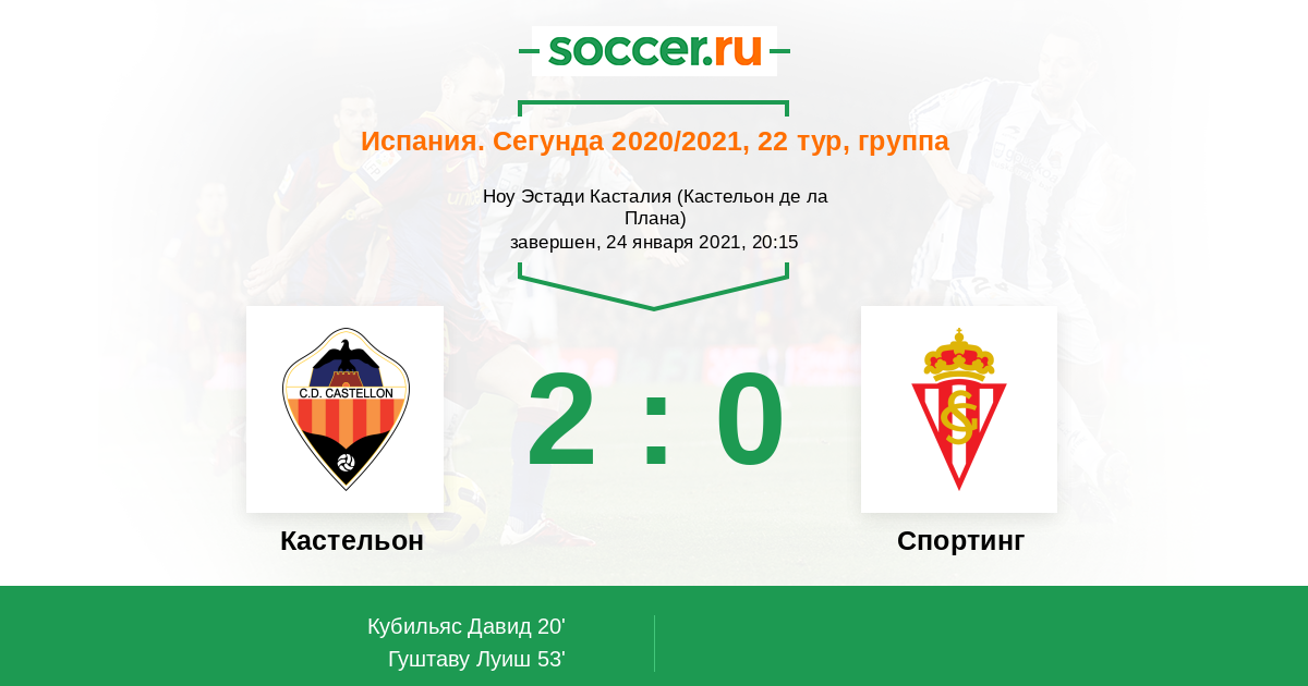 Протокол матча Кастельон против Спортинг