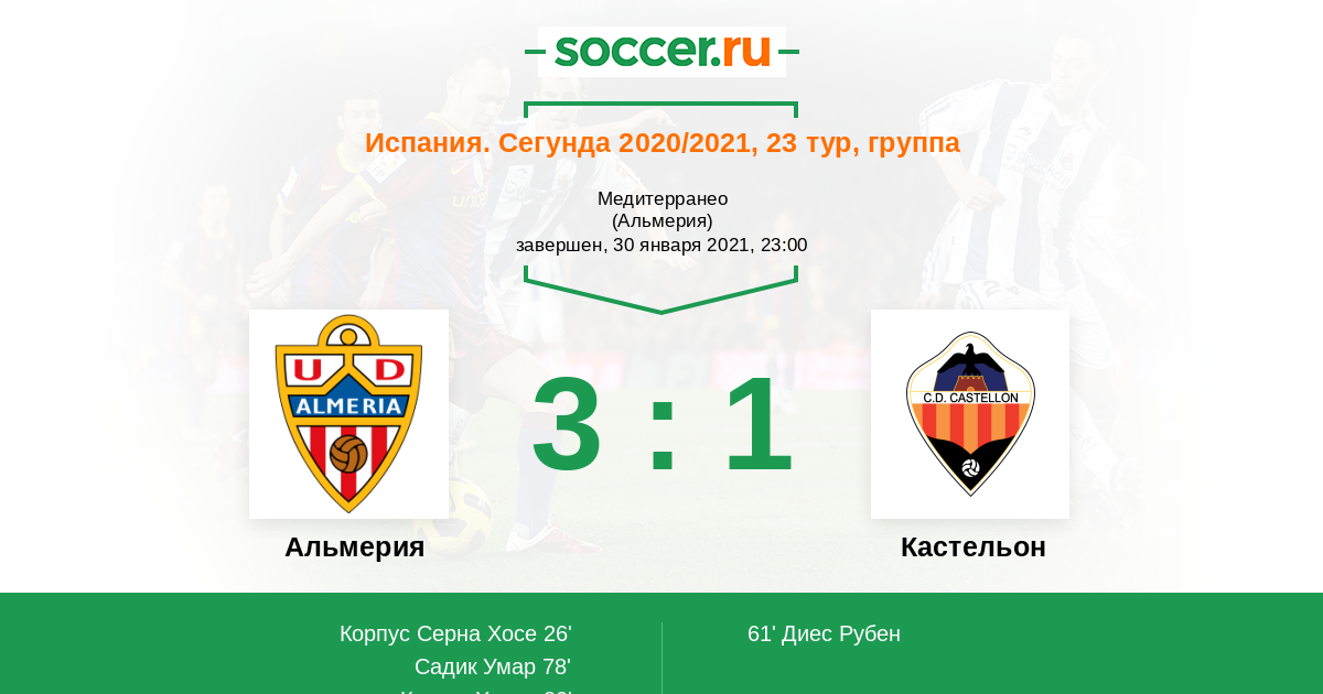 Протокол матча Альмерия против Кастельон