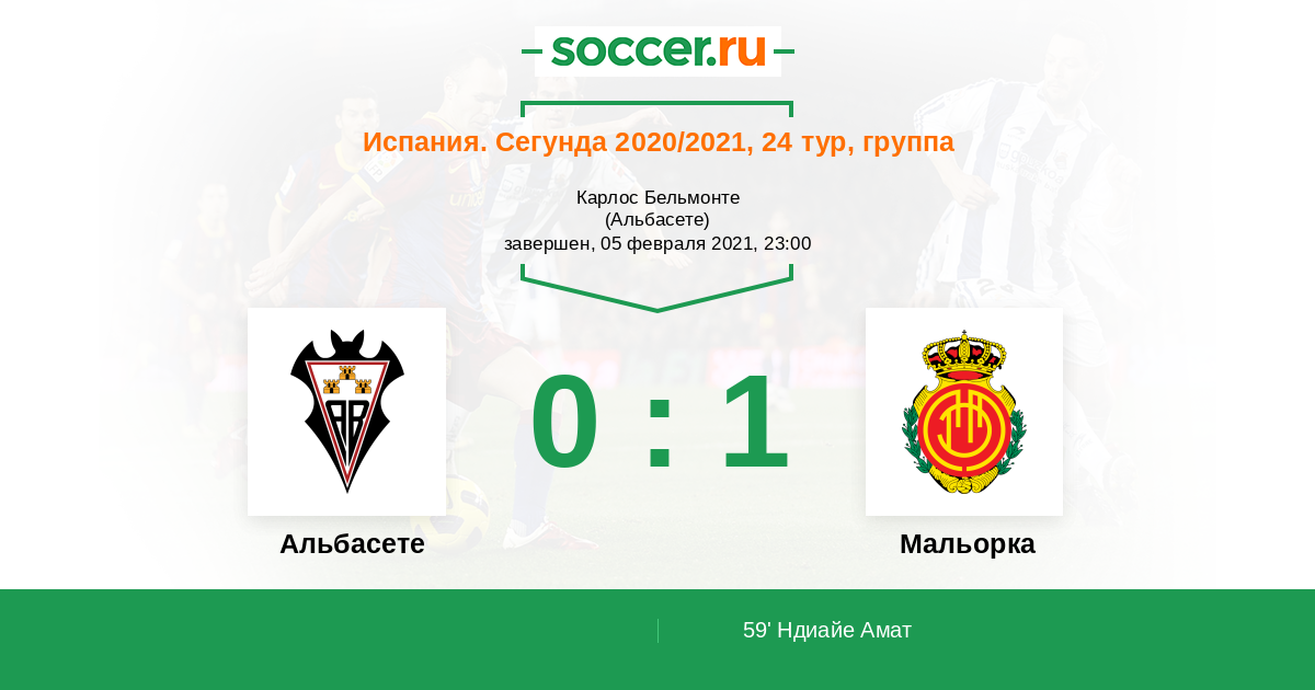 Протокол матча Альбасете против Мальорка