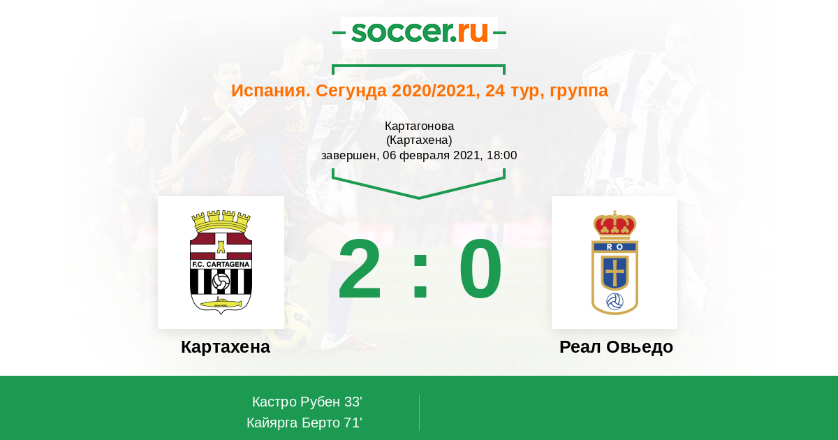 Протокол матча Картахена против Реал Овьедо