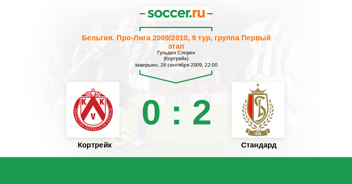 Бельгия. Про-Лига 30.09.2012 Кортрейк Логотип футбольный клуб Кортрейк 2:1 Логотип футбольный клуб Стандард (Льеж) Стандард