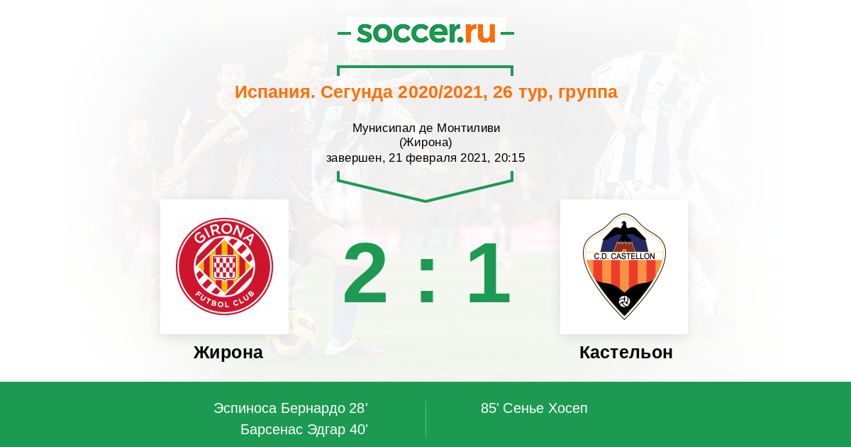 Протокол матча Жирона против Кастельон