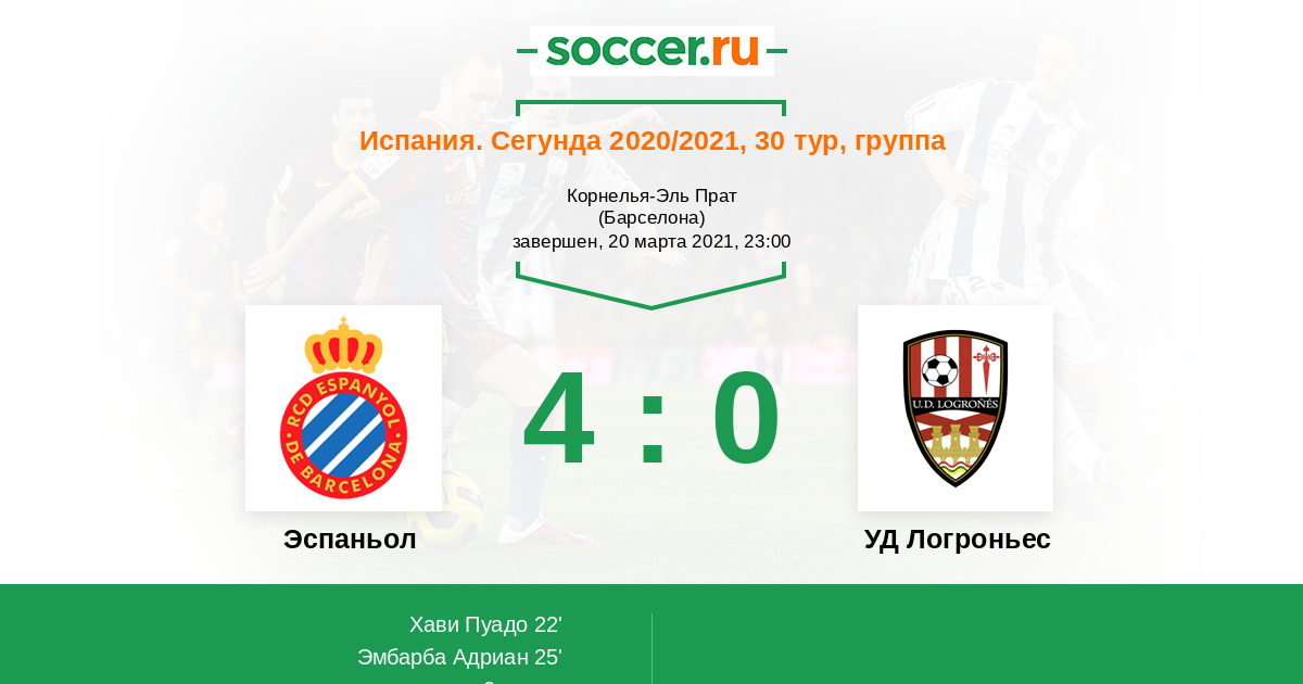 26' (3:0) Педроса Адриа (3) (Эмбарба Адриан (23))