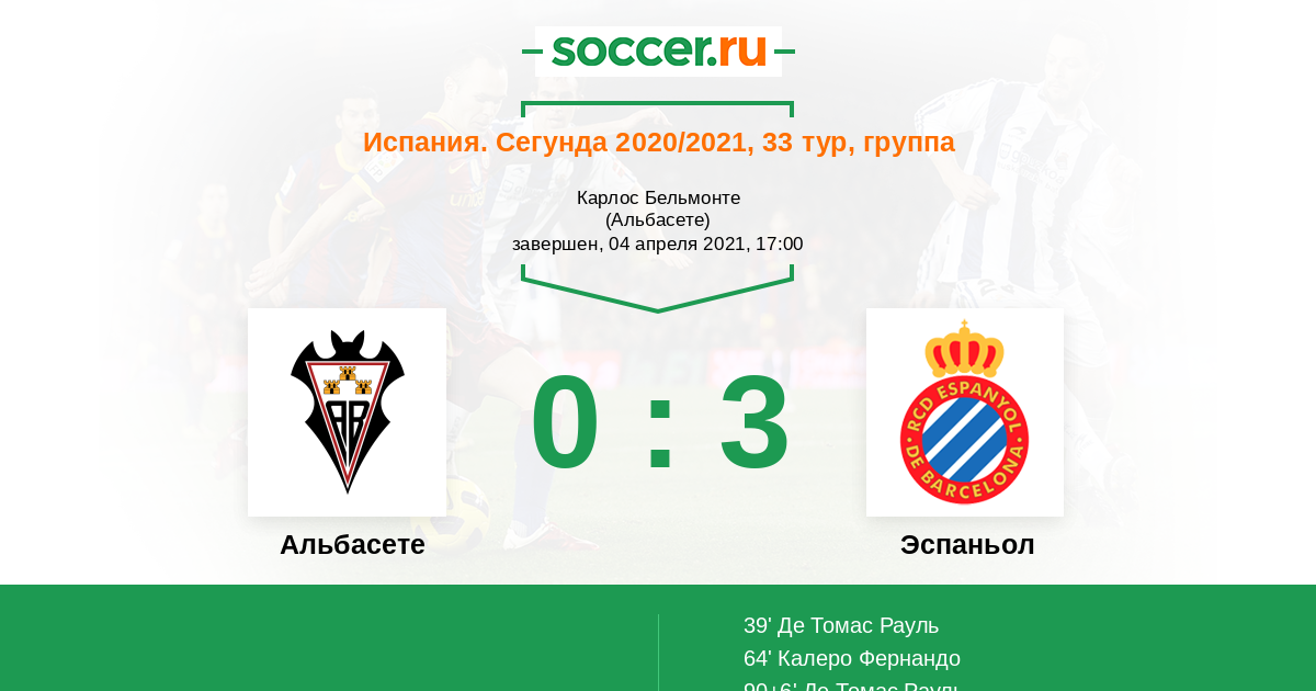Протокол матча Альбасете против Эспаньол