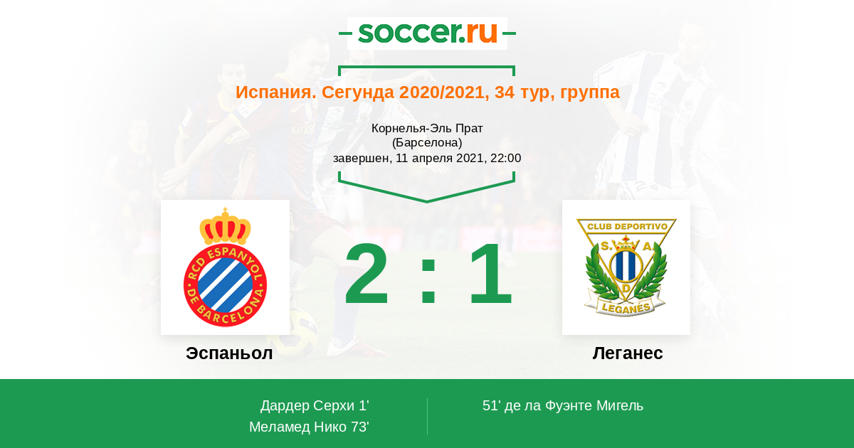 Протокол матча Эспаньол против Леганес