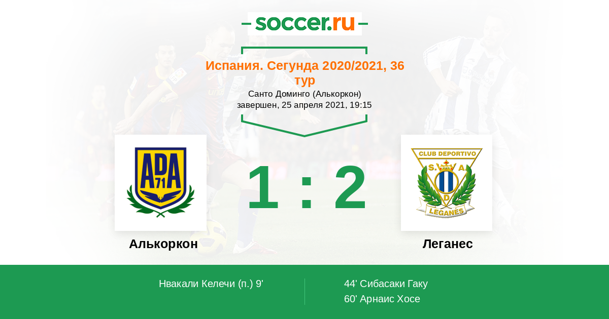 Протокол матча Алькоркон против Леганес