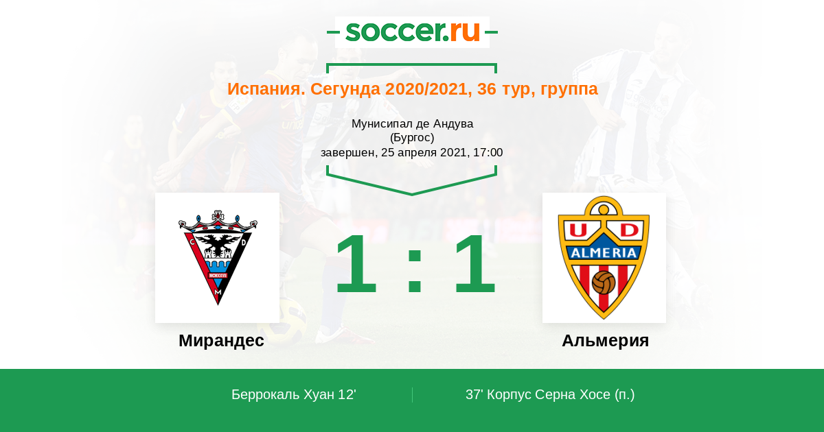 12' (1:0) Беррокаль Хуан (4) (Гомес Виктор (20))