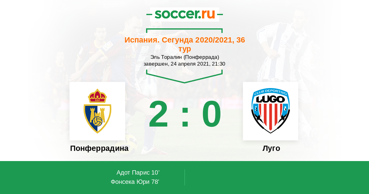 Протокол матча Понферрадина против Луго
