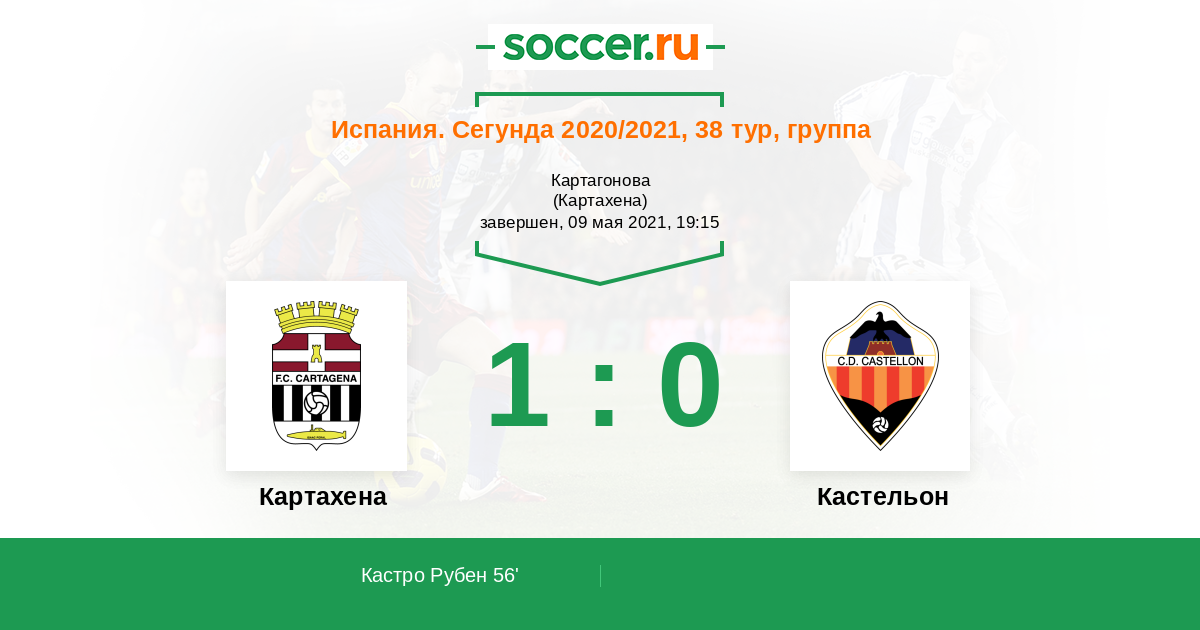 Протокол матча Картахена против Кастельон