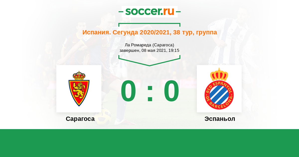 Протокол матча Сарагоса против Эспаньол
