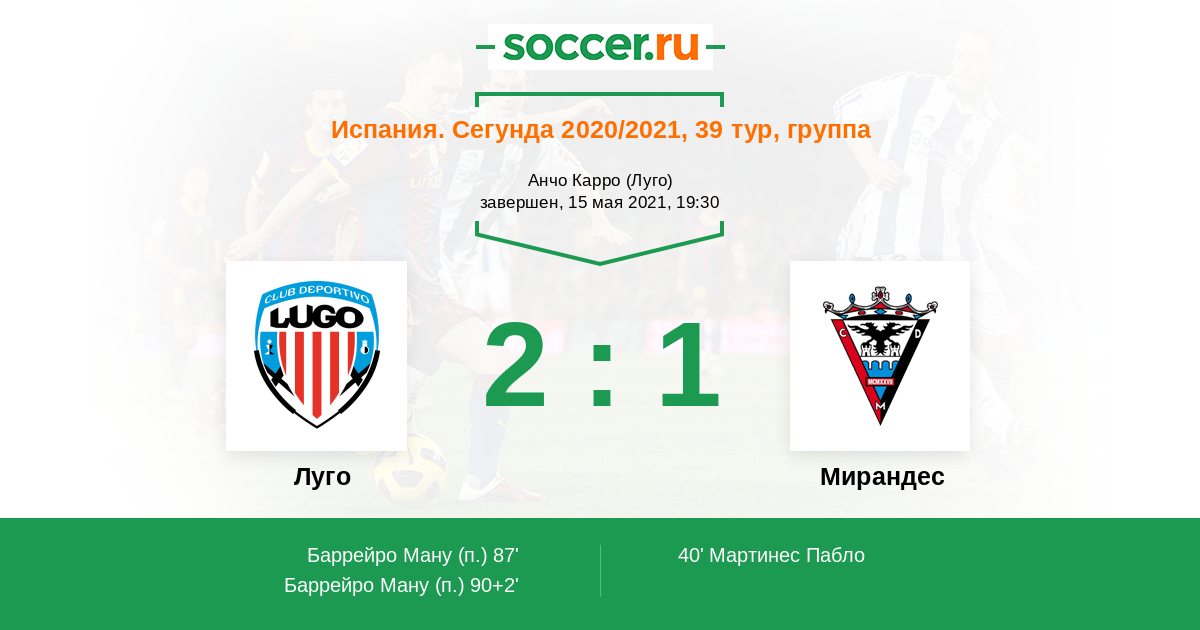 Протокол матча Луго против Мирандес