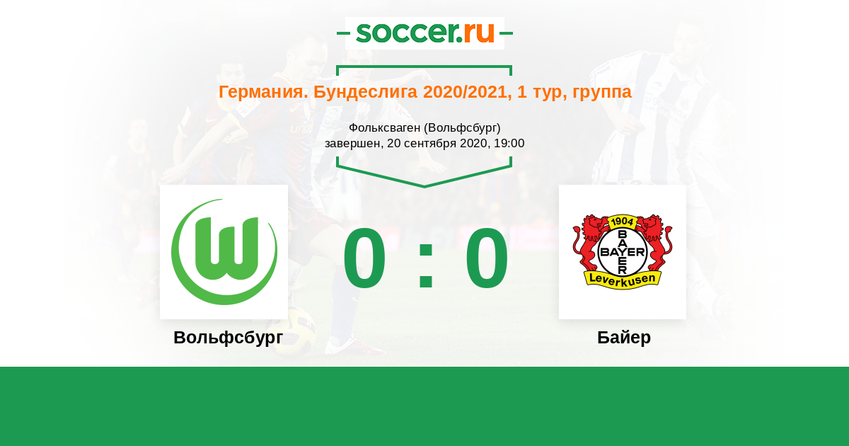 Протокол матча Вольфсбург против Байер