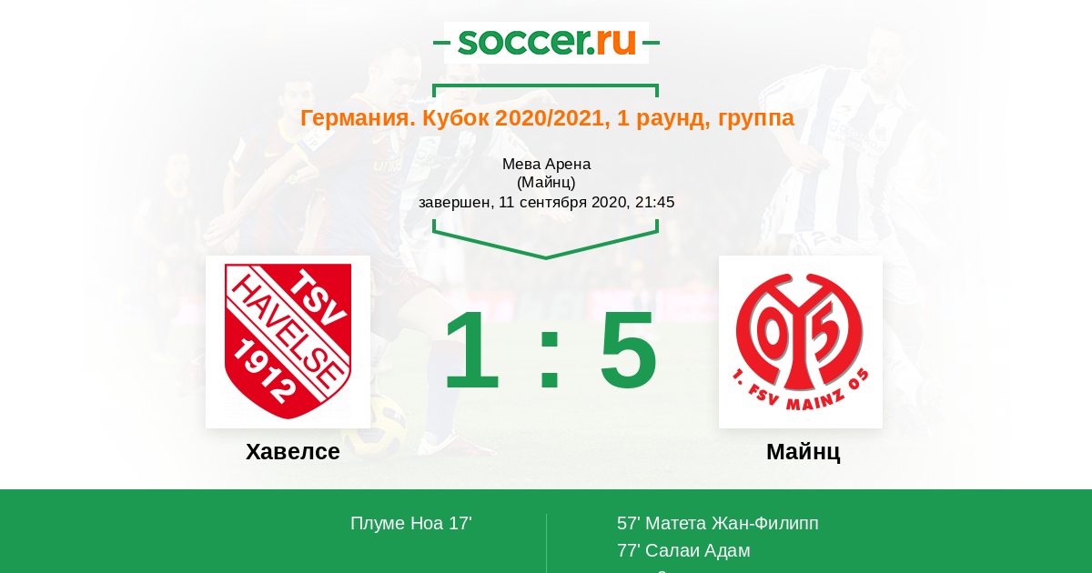Протокол матча Хавелсе против Майнц